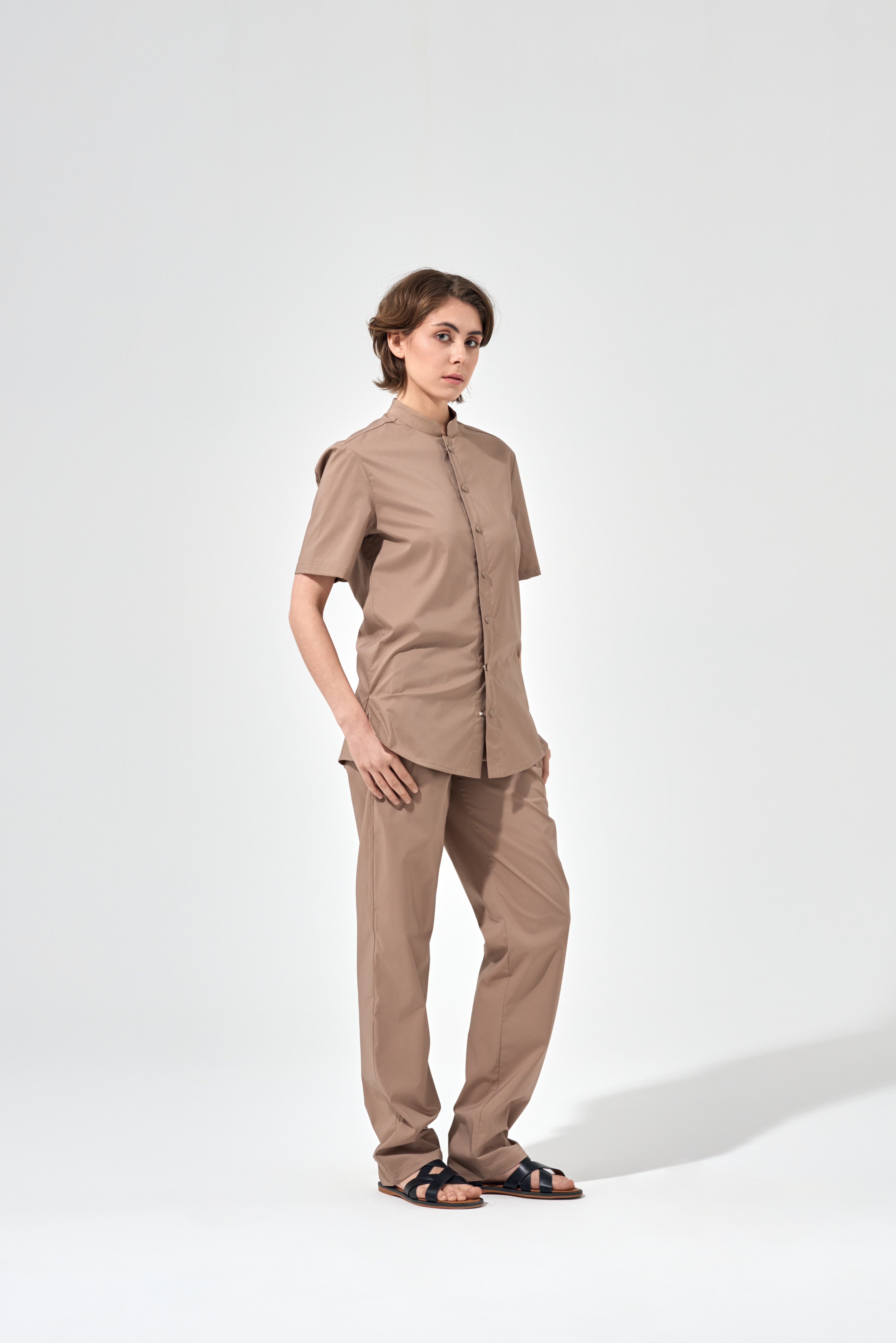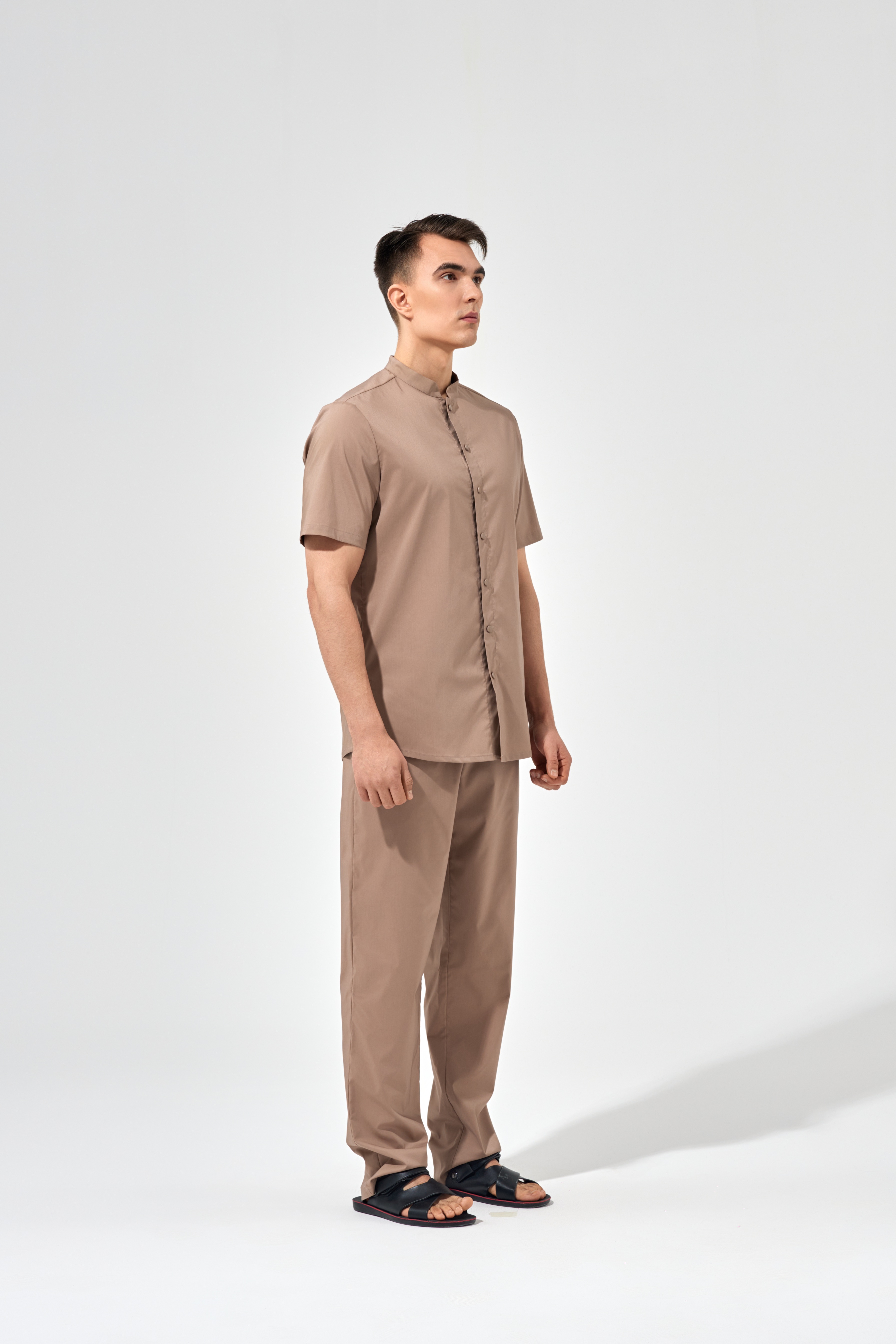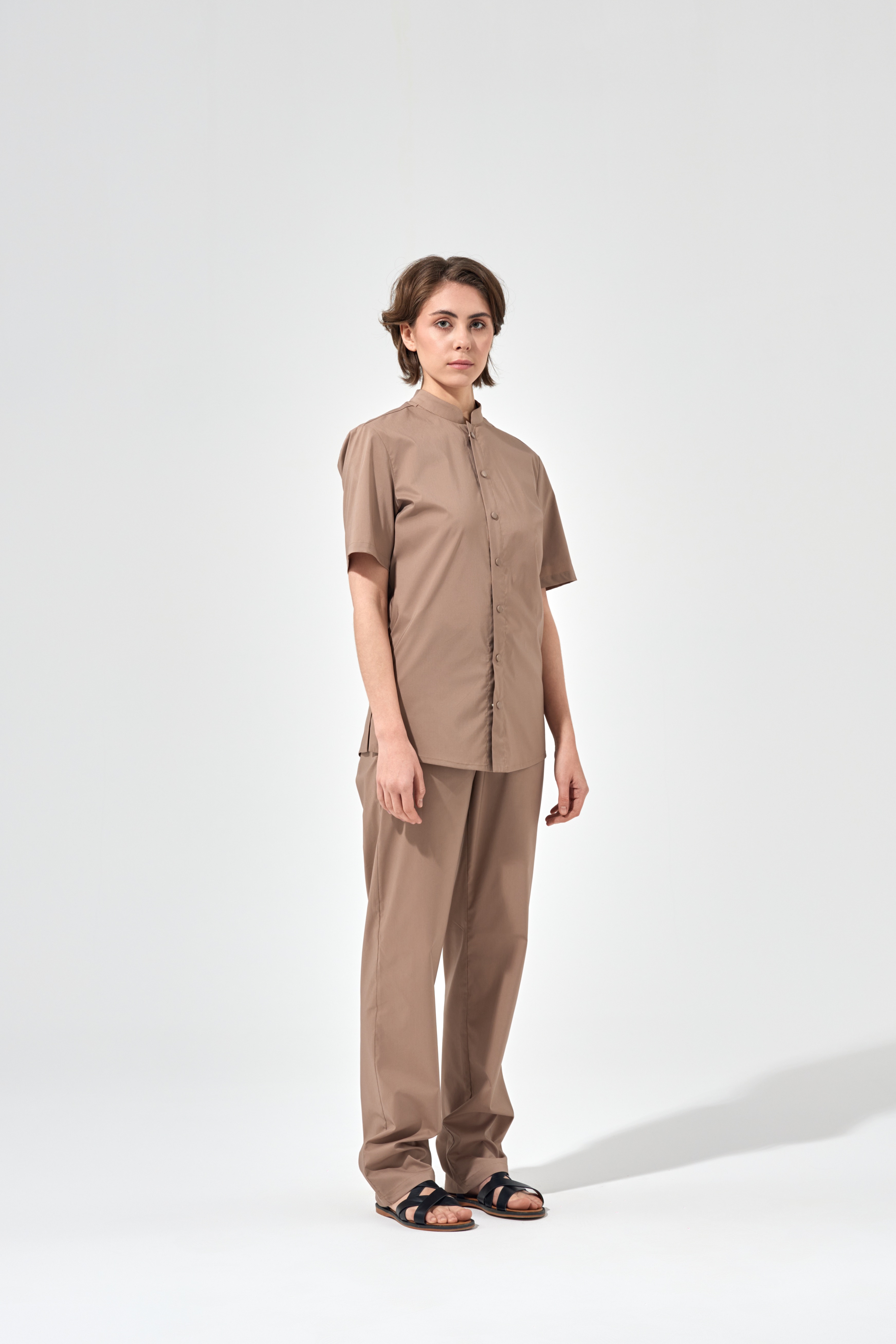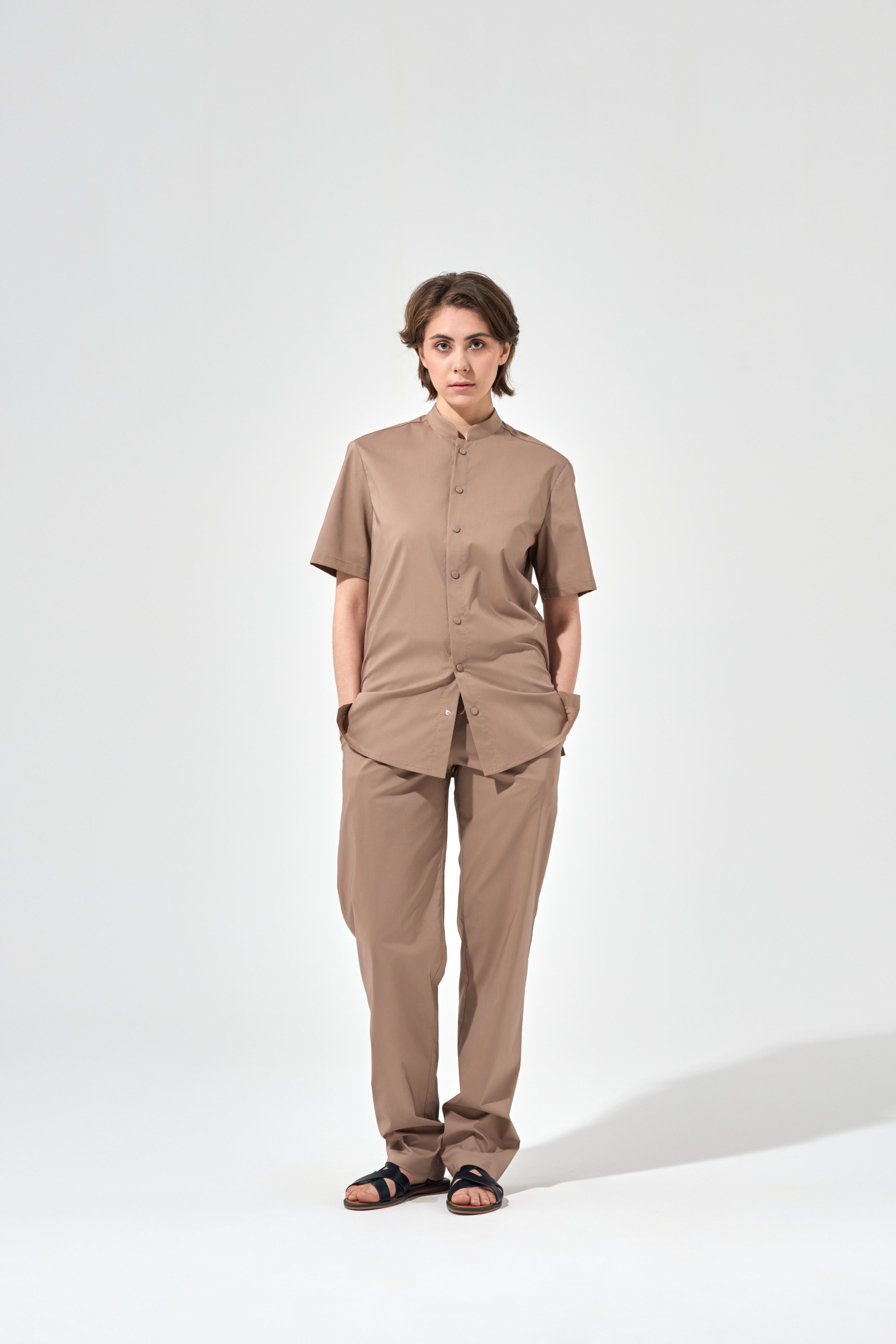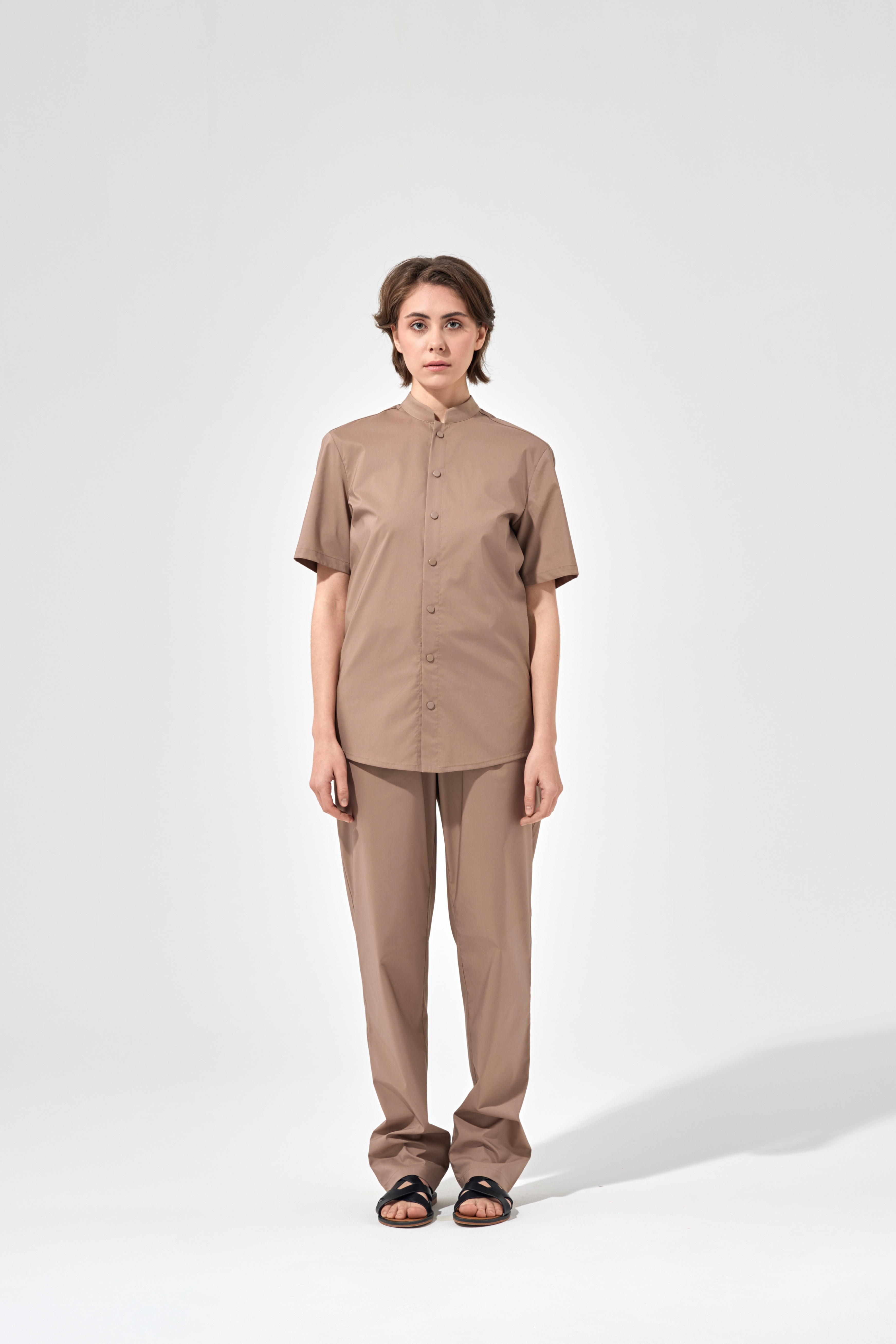 Рубашка китель с прямой застежкой мокко, короткий рукав