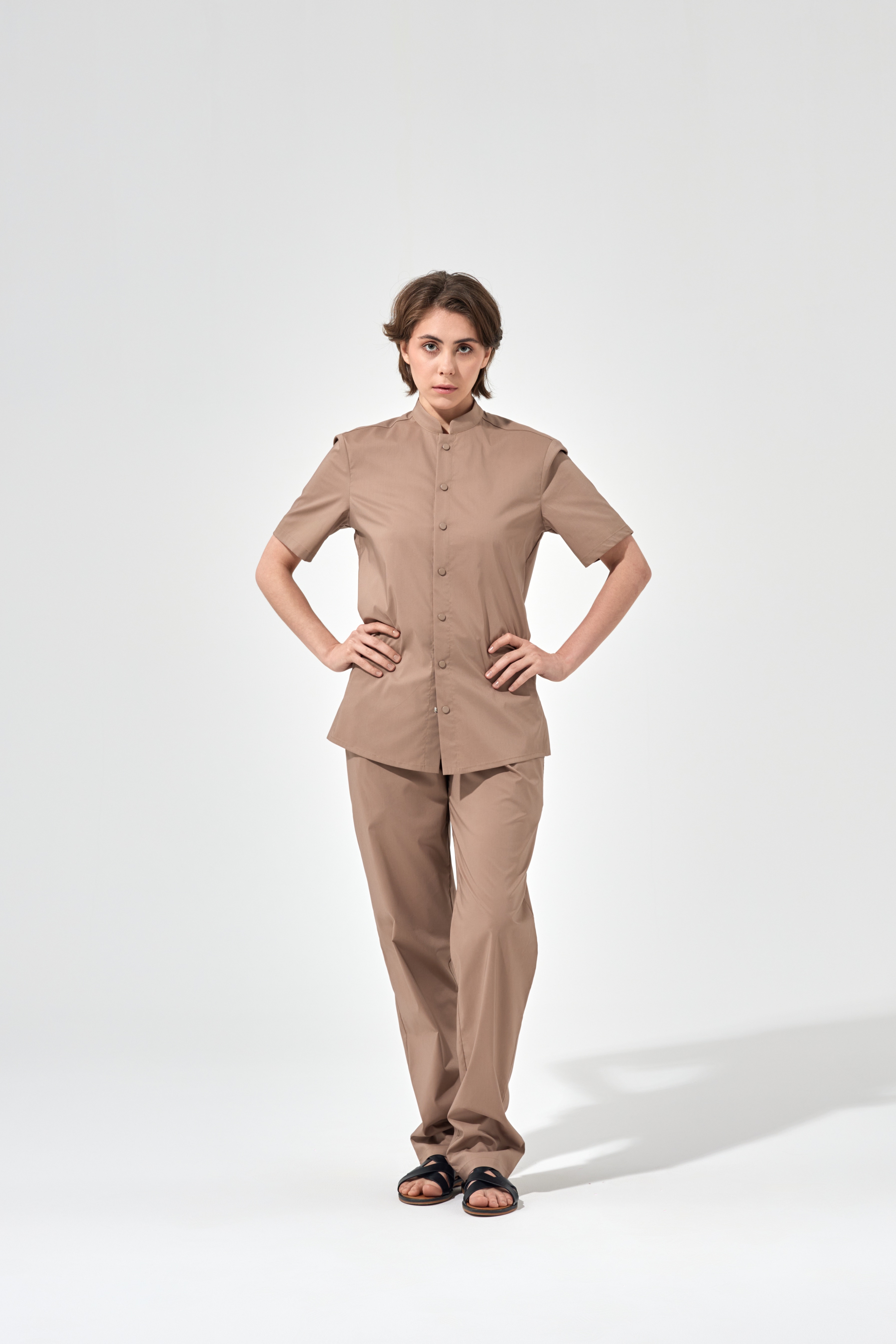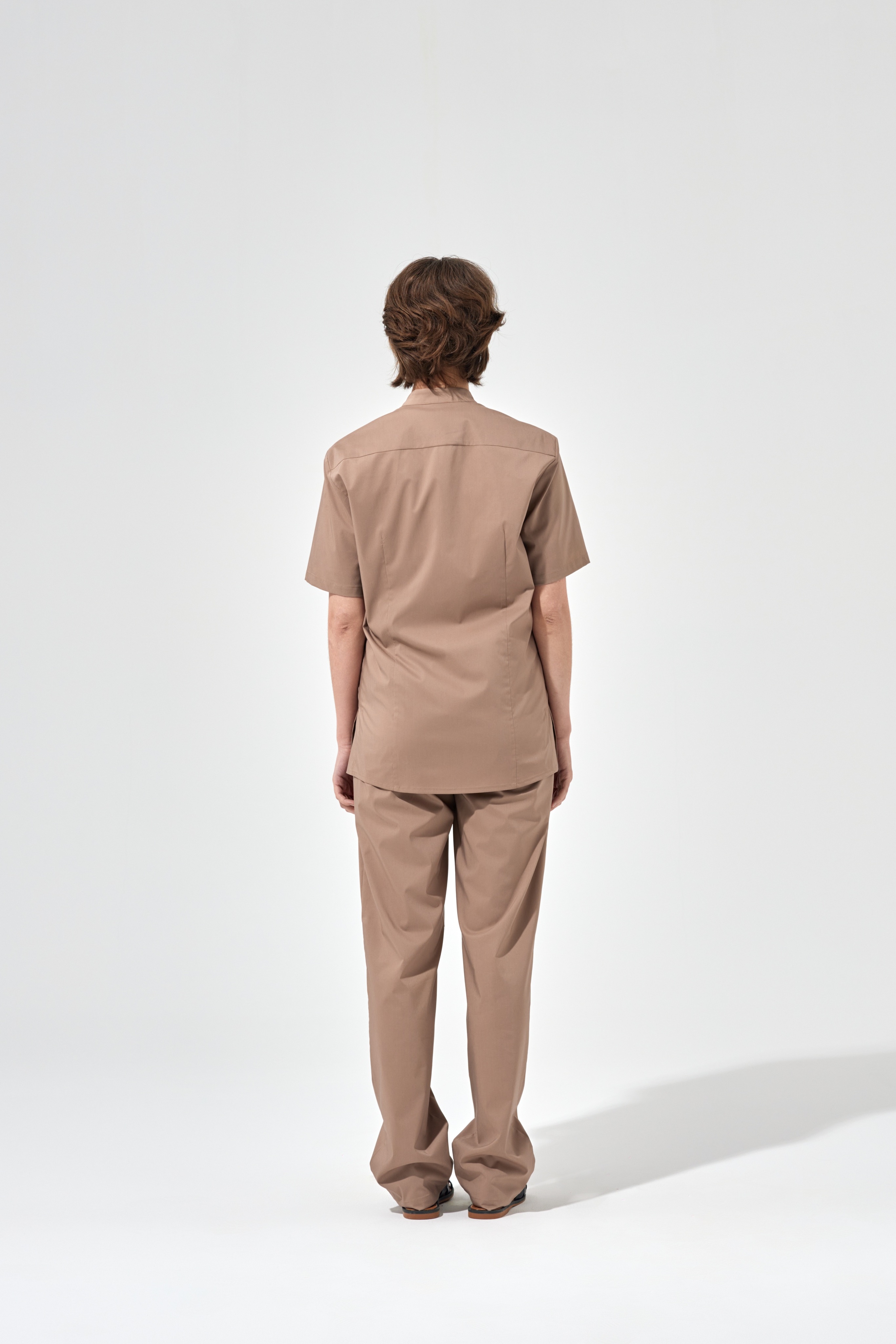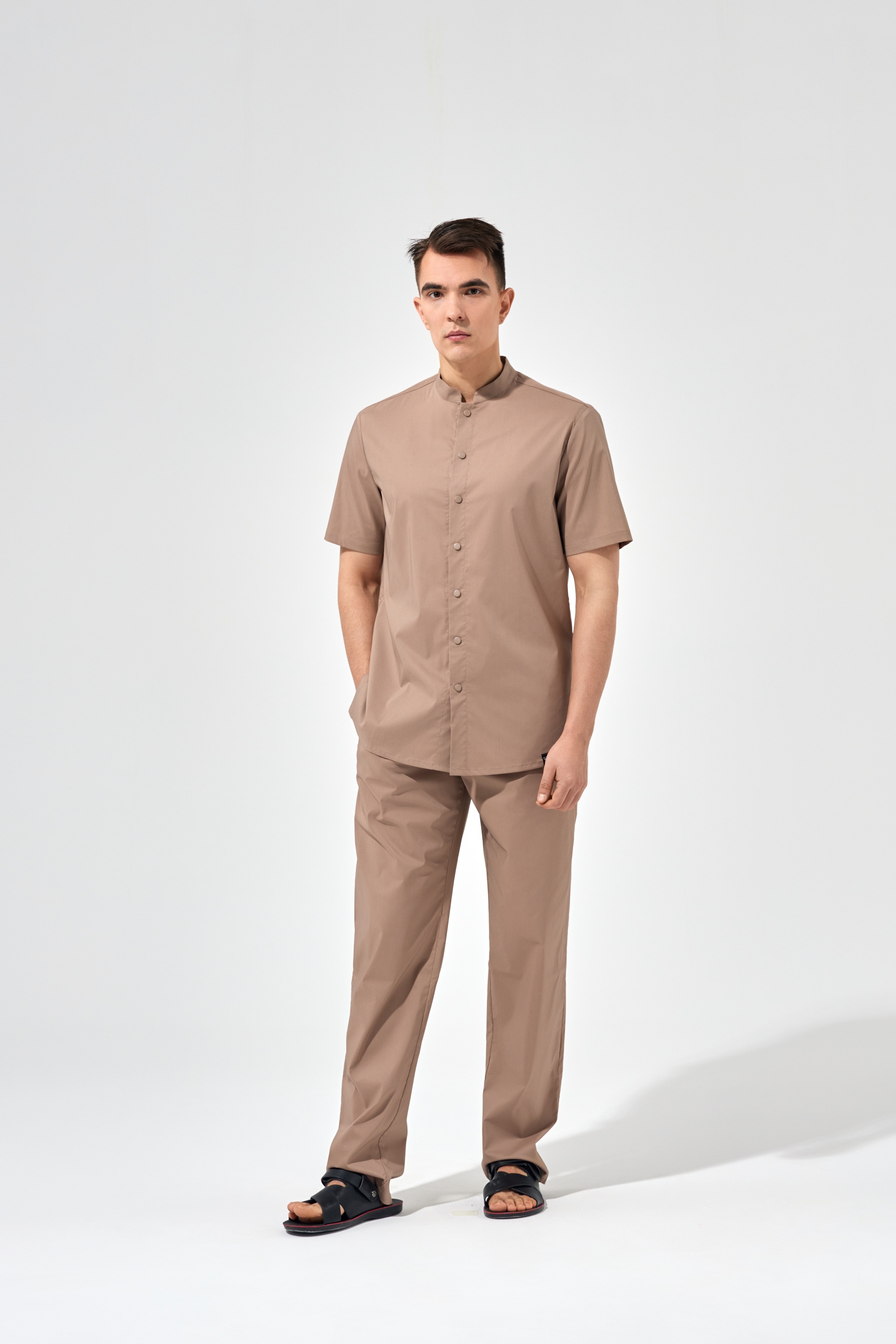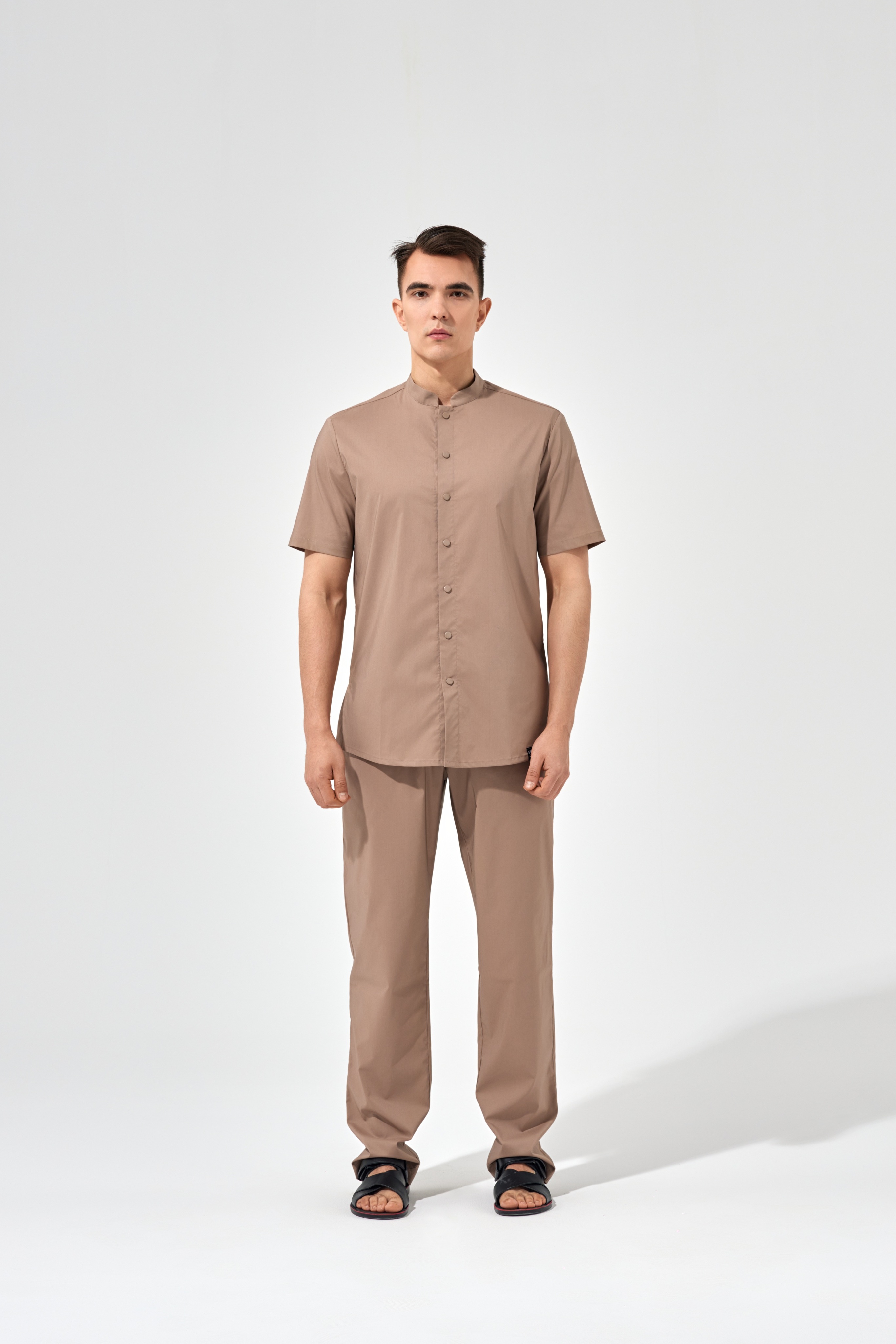 Рубашка китель с прямой застежкой мокко, короткий рукав