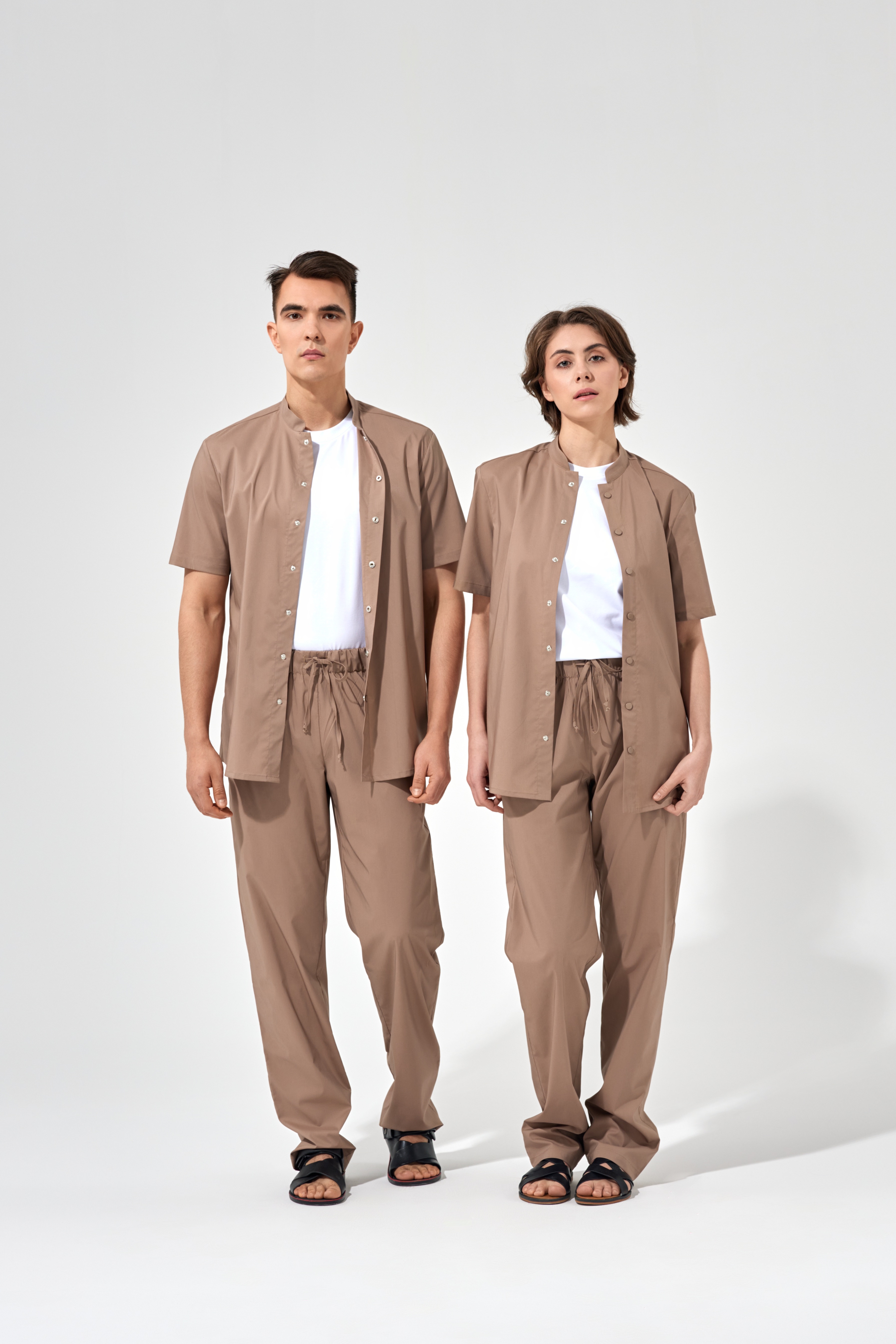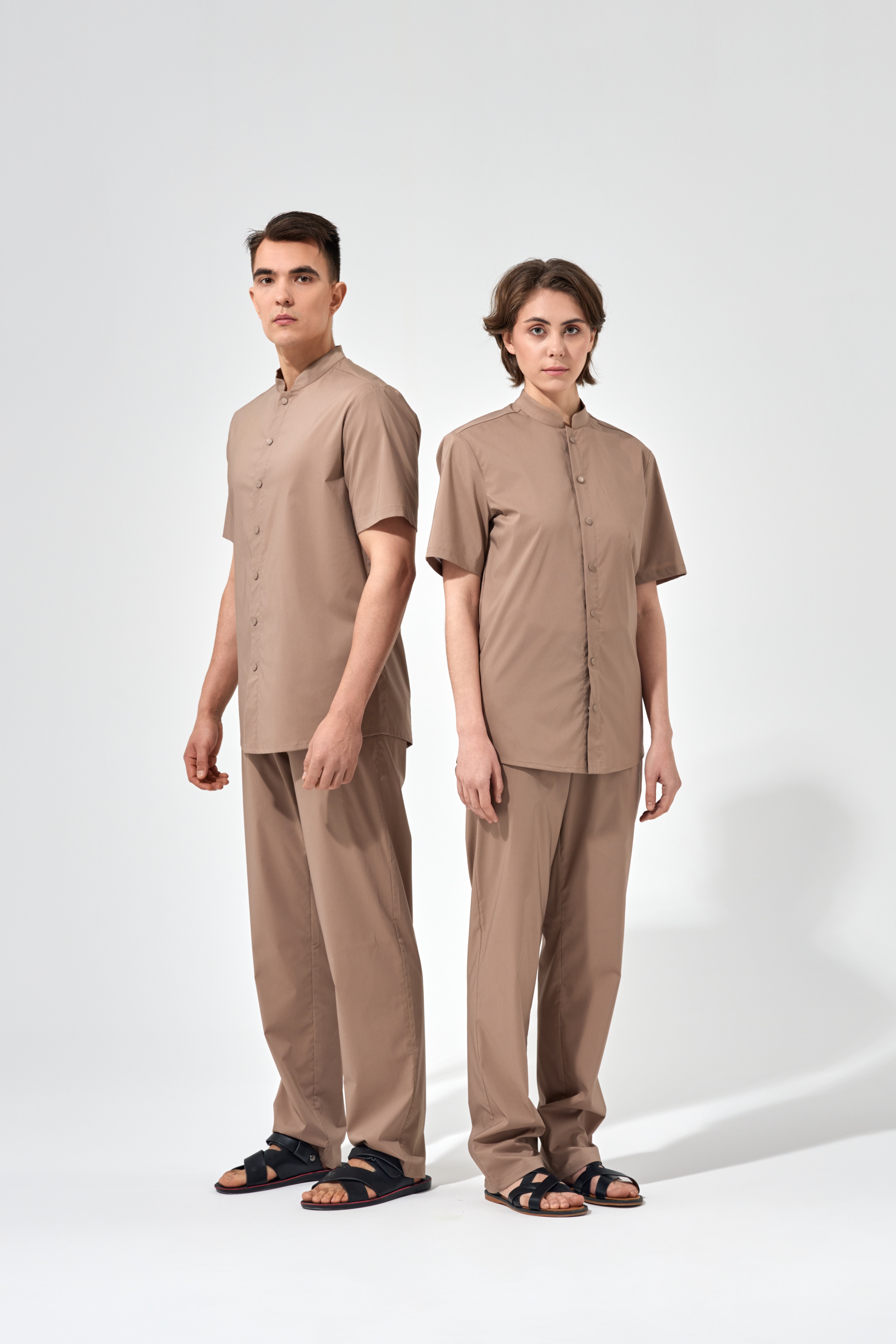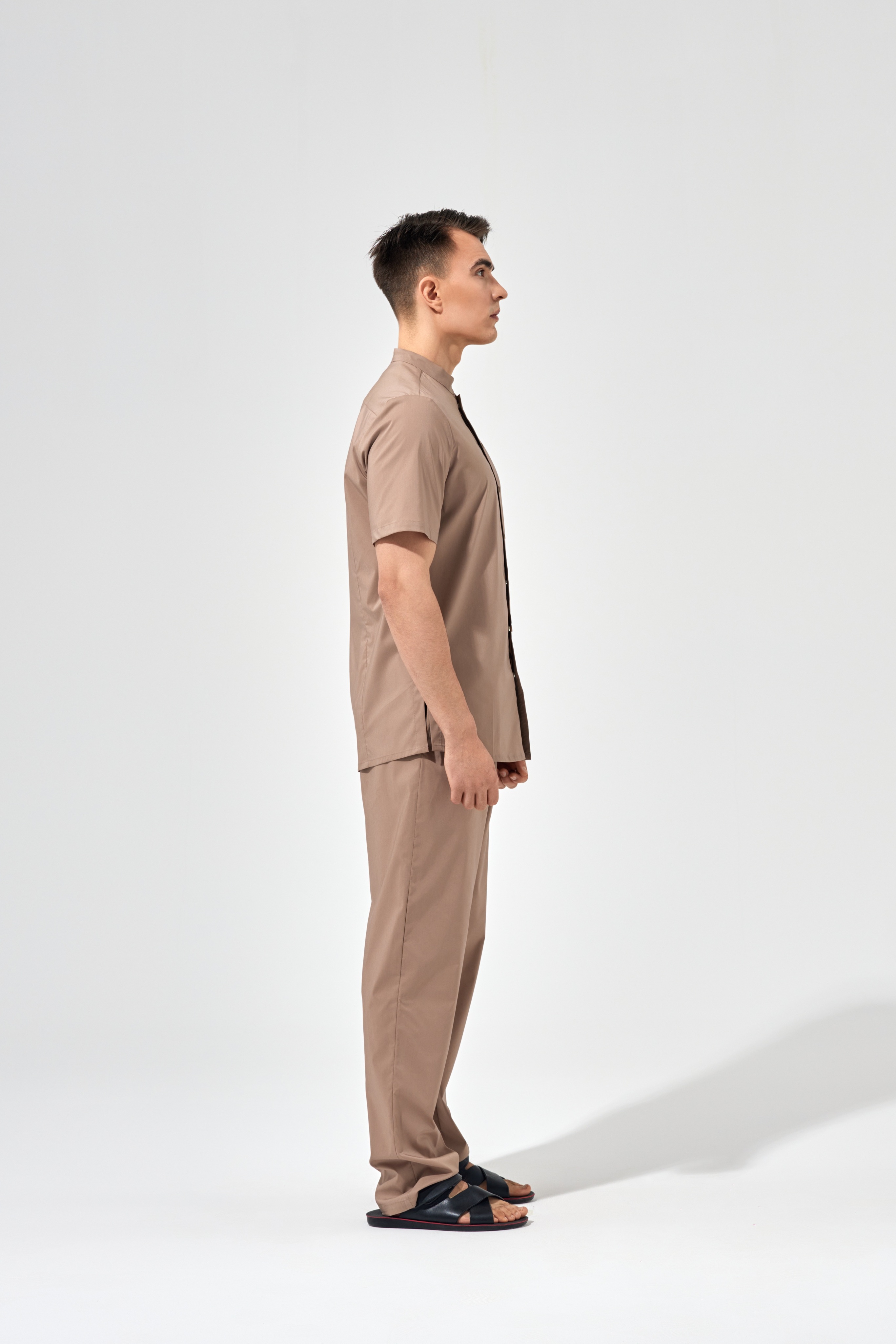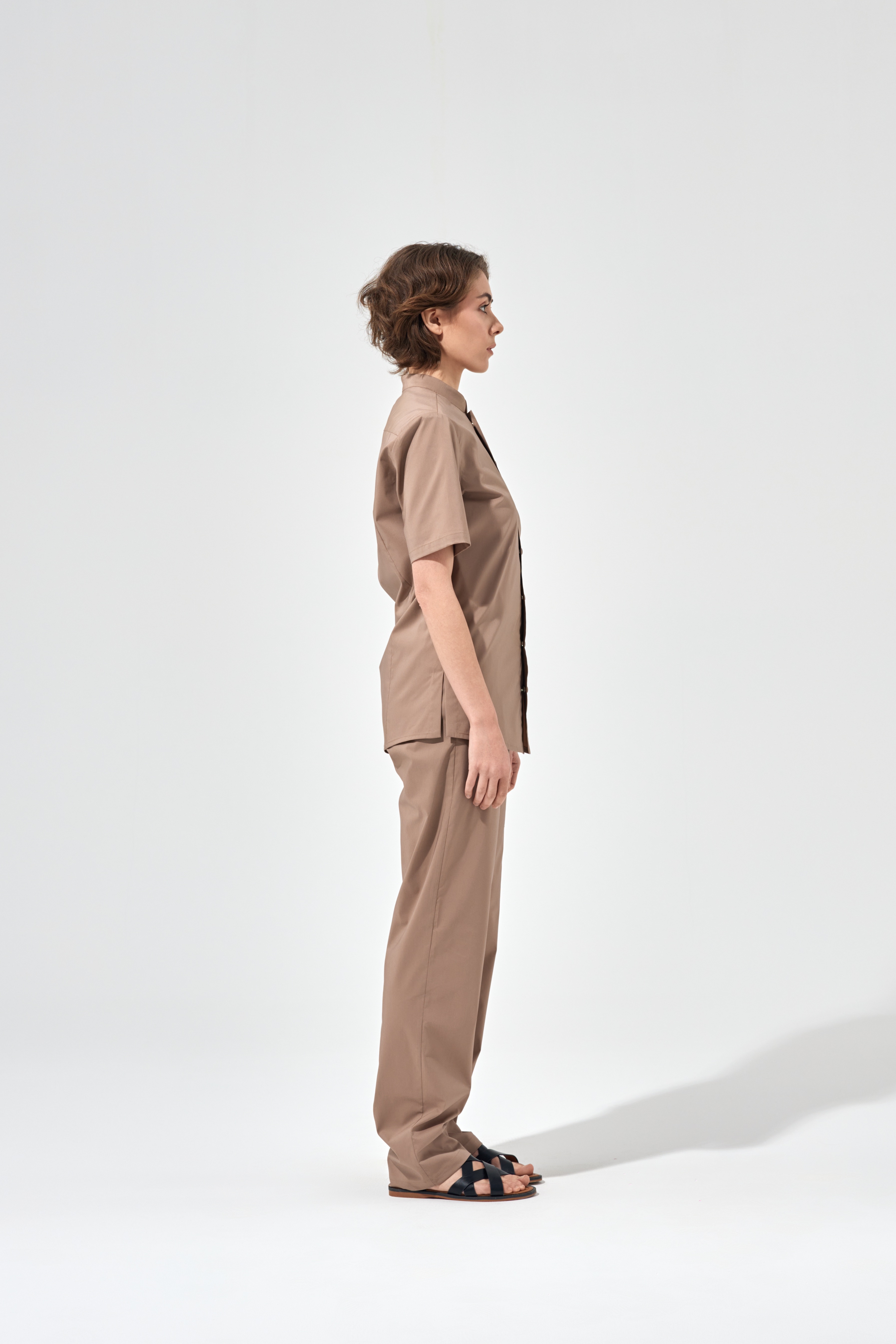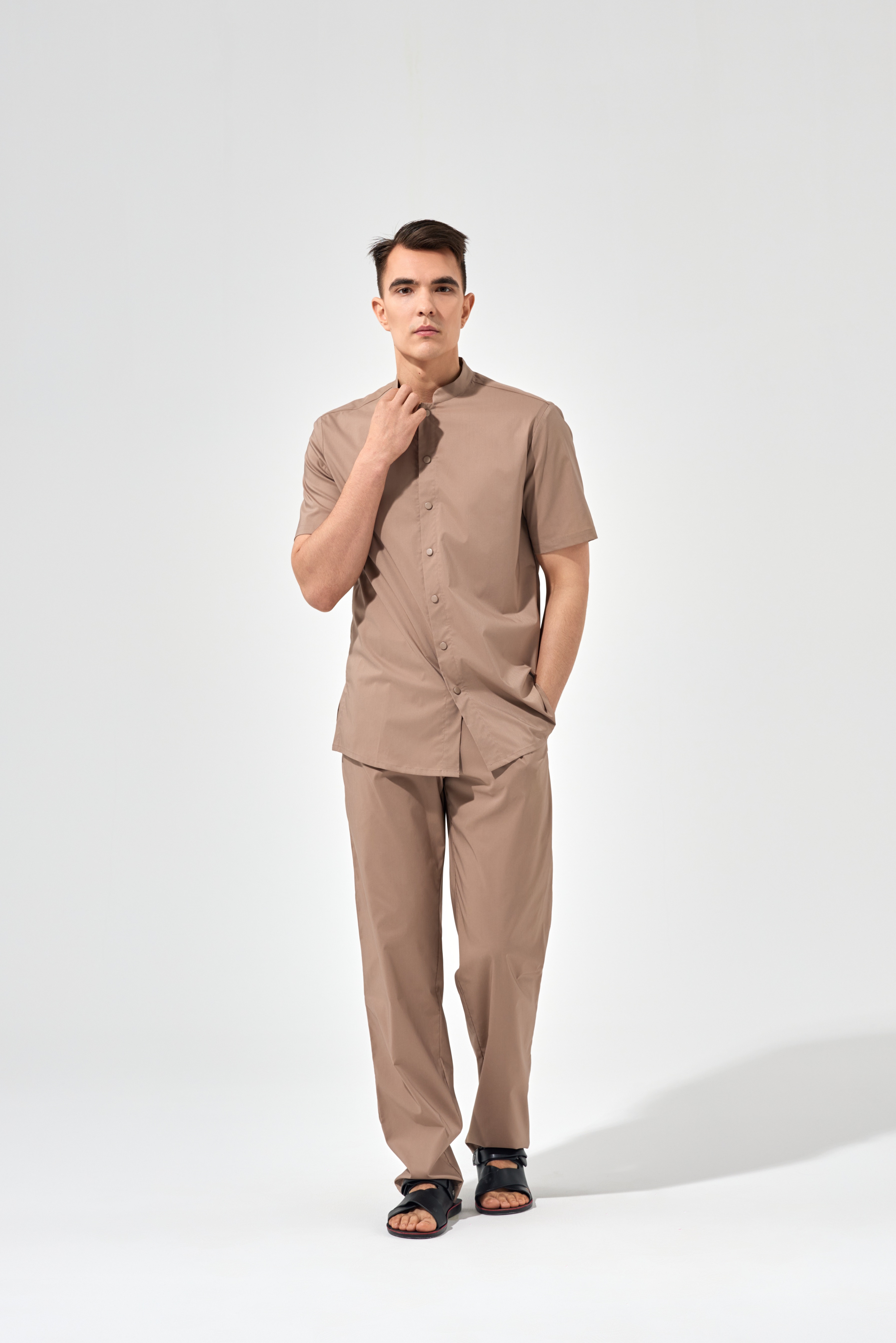 Рубашка китель с прямой застежкой мокко, короткий рукав